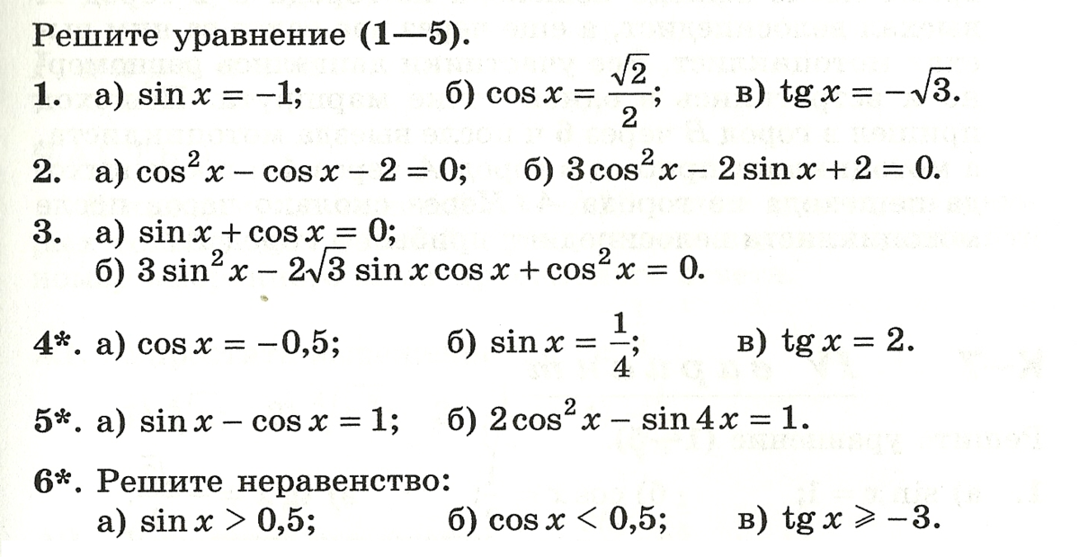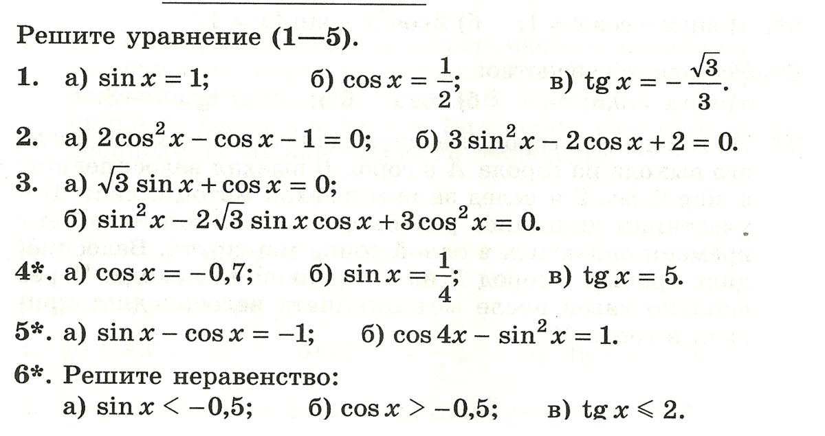 1. а) п/2 + 2пк , к принадлежит з б) х=+- п/3 +2пк, к принадлежит з в) х= -п/6 +пл, к принадлежит з