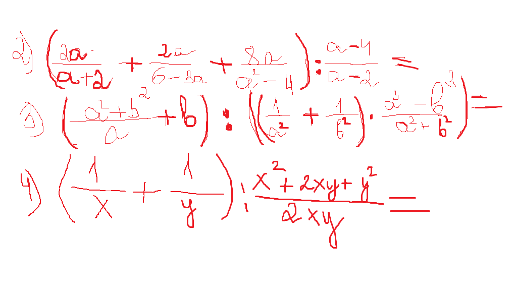 (frac{1}{x}+frac{1}{y}):frac{x^2+2xy+y^2}{2xy}=frac{y+x}{xy}*frac{2xy}{(x+y)^2}=frac{2}{x+y}