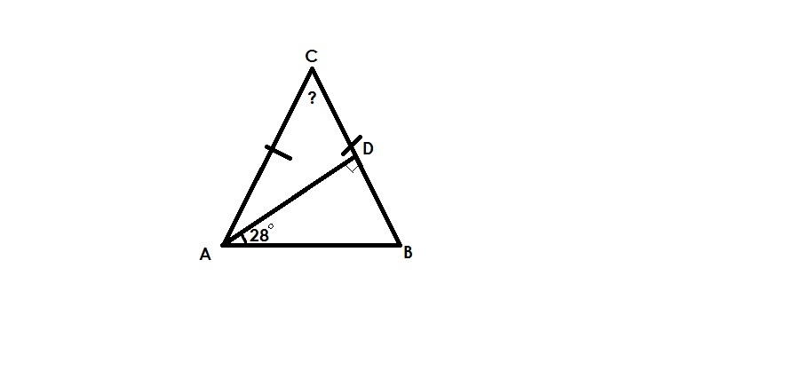 Т.к. сумма углов в треугольнике всегда равна 180°, значит, LB=180°-LD-LA следовательно LB=180°-90°-28°=62°