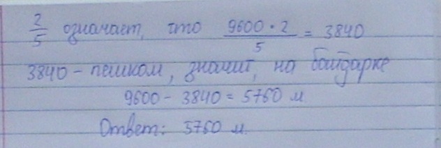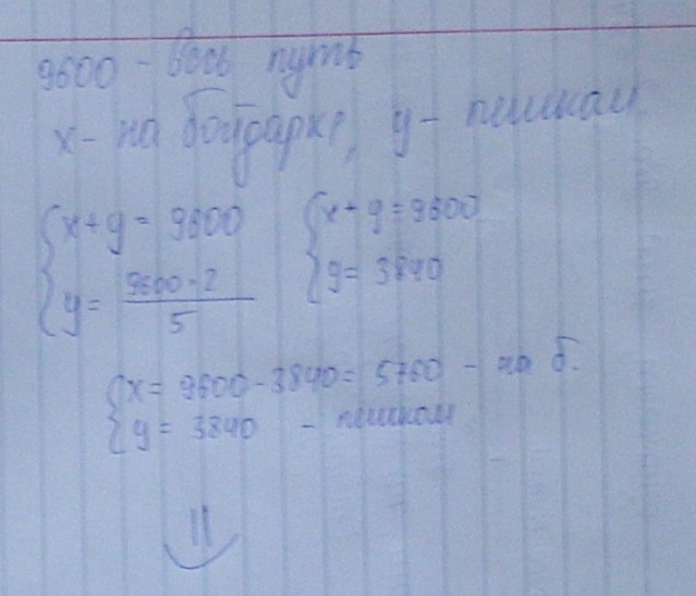 1) 9600 : 5 х 2 = 3840 км пройти пешком