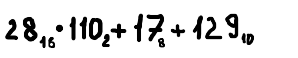 28 в 16-ичной * 110 в 2-ичной + 17 в 8-ичной + 129 в 10-ичной