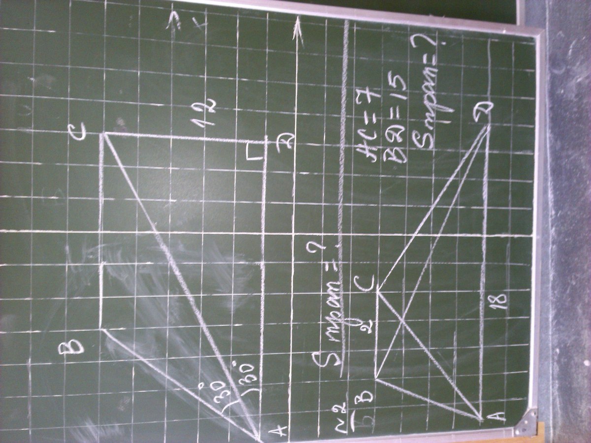 Пусть трапеция АВСD, проведем через В прямую II АС до пересечения с продолжением AD в точке Е. Треугольник ВДЕ имеет ту же площадь, что и трапеция, потому что его основание ДЕ = АD + ВС, а высота ДВЕ и ABCD - это расстояние от точки В до АД (то есть высота общая).Таким образом, нам надо найти площадь треугольника (ВСЕ) со сторонами 7, 15 и 20.