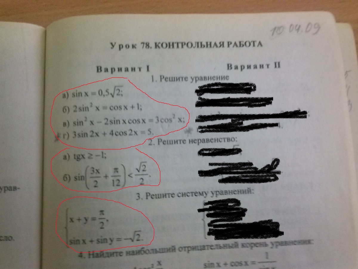 1 а) x1=pi/4+2pik; x2=3pi/4+2pik