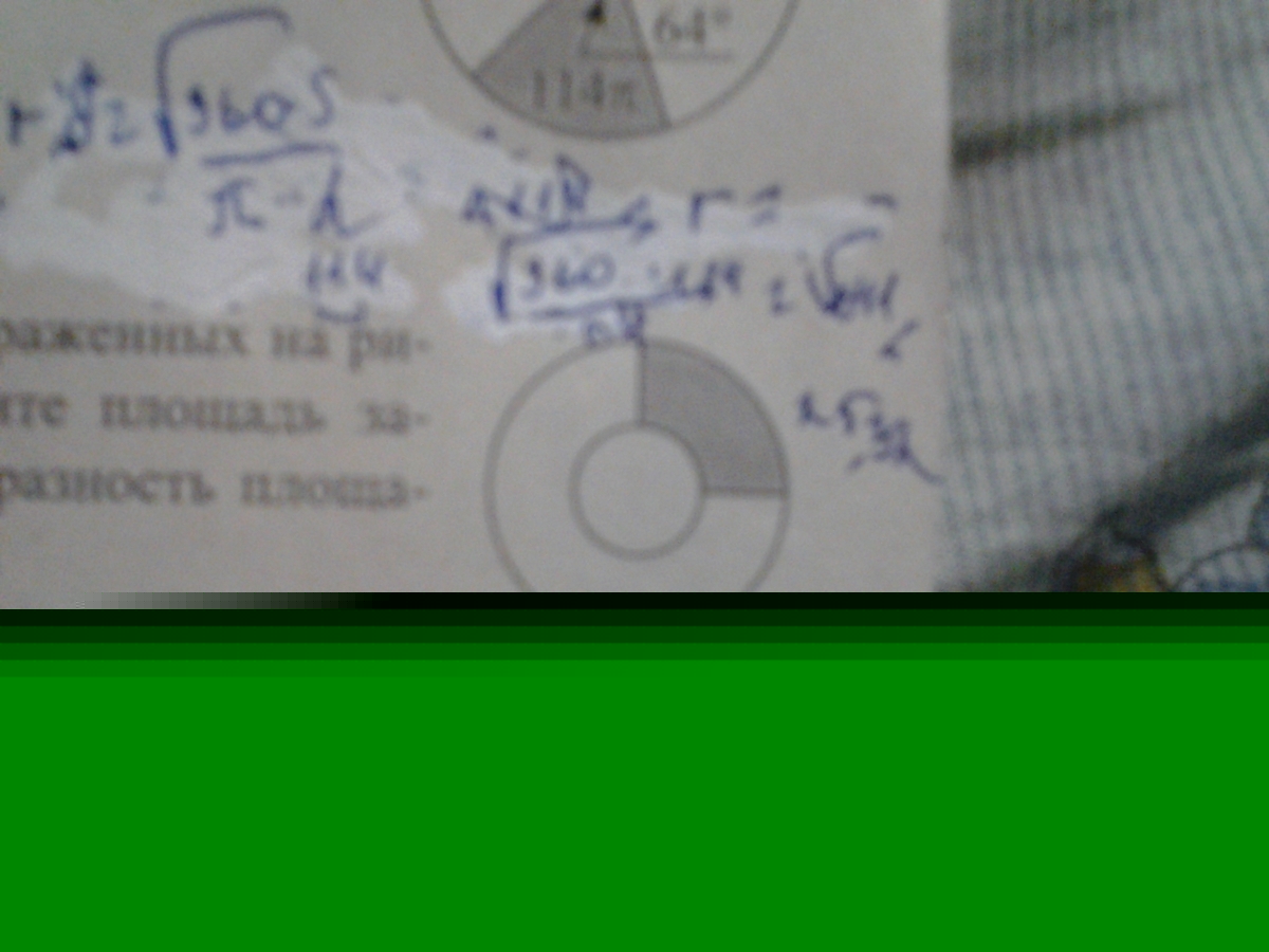 другой метод-площадь кольца=пи*(радиус2 в квадрате-радиус1 в квадрате)=пи*(9-1)=8пи, заштрихованная область =1/4 окружности (угол центральный 90), тогда 8пи/4=2пи