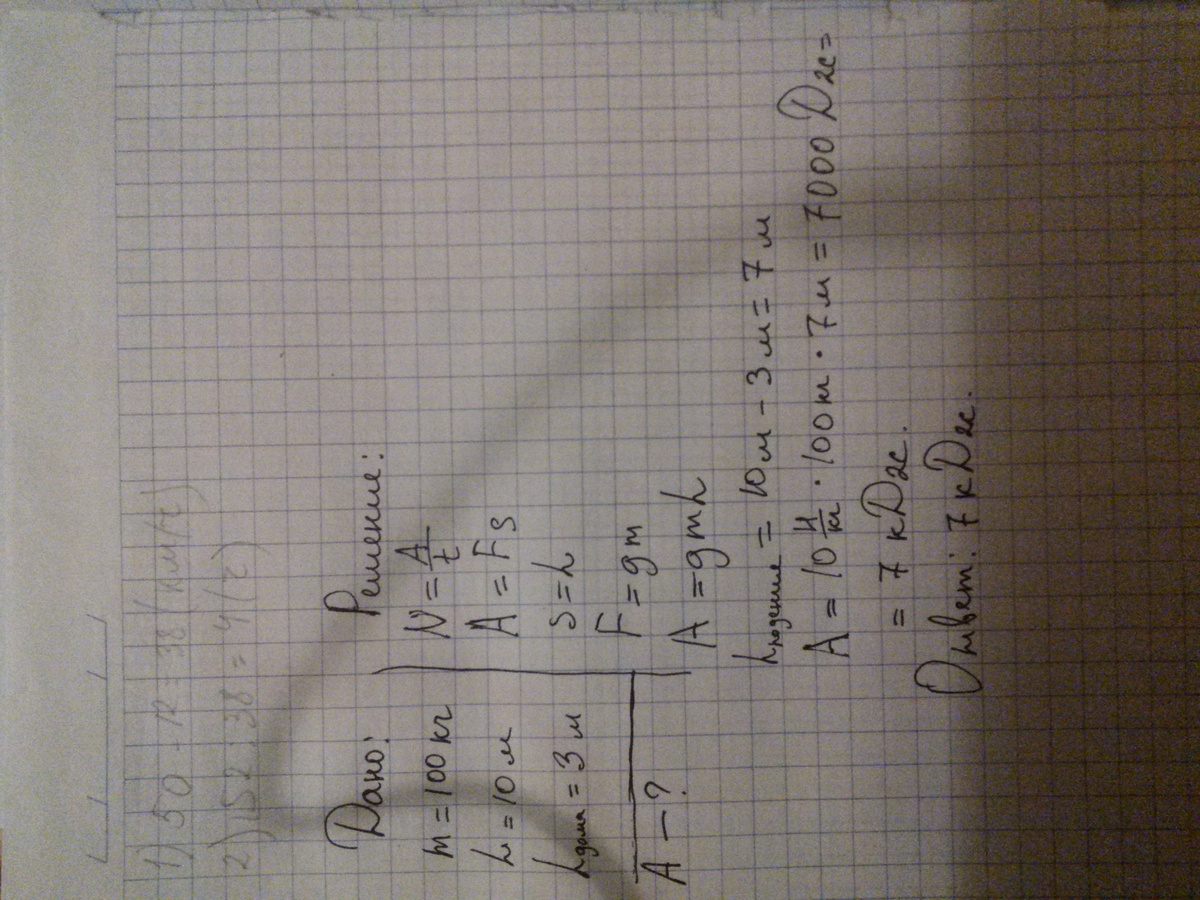 тело массой 100 кг упало с высоты 10 м на крышу дома, высота которого 3 м. какова работа, совершаемая силой тяжести?
