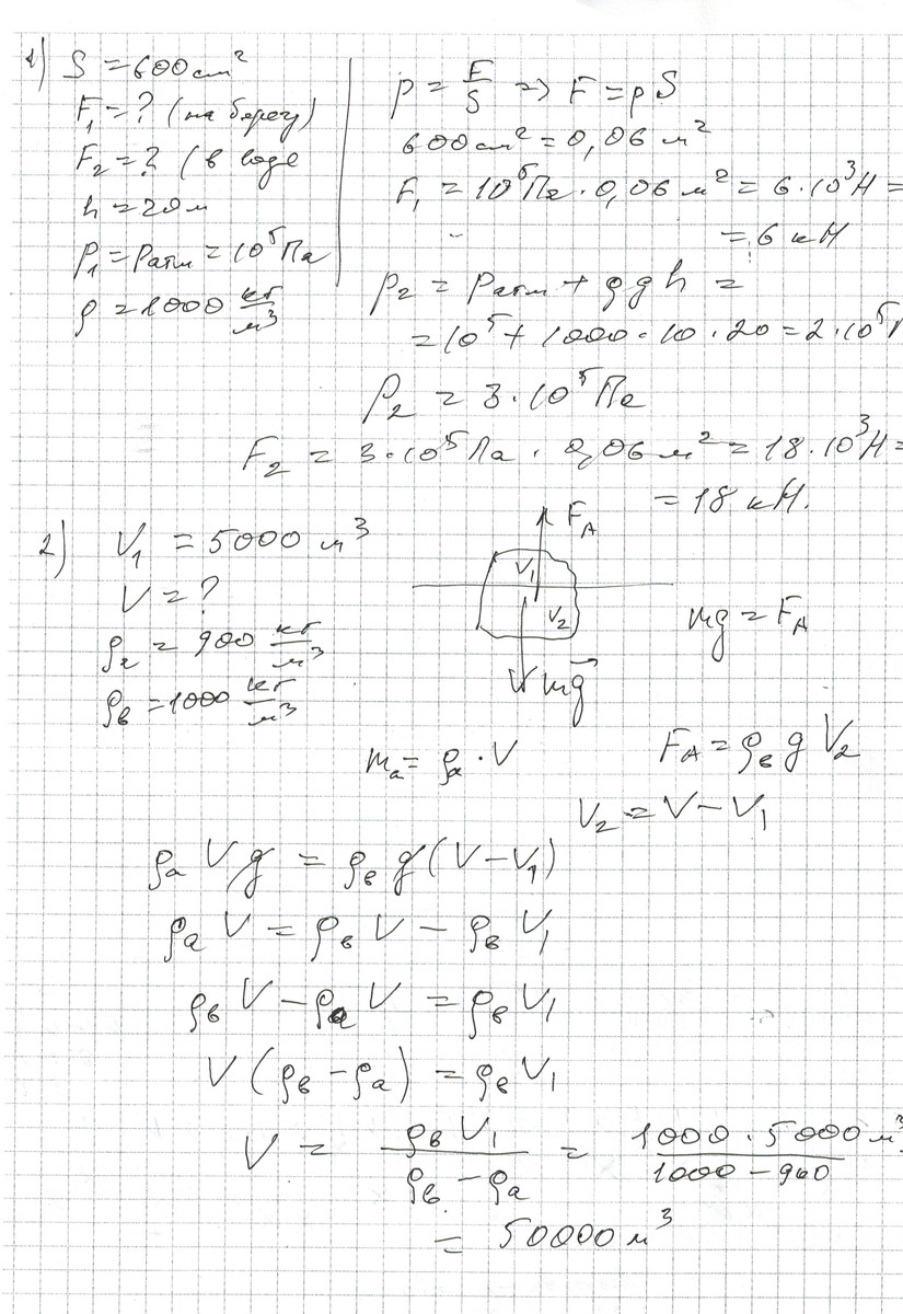 2)Объём надводной части айсберга равен 5000 м(в кубе).Определите объём всего айсберга.