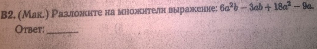 6а^2b - 3ab + 18a^2 - 9a = 6a^2(b+3) - 3a(b+3) = (6a^2-3a)(b+3)