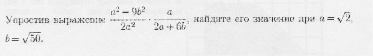(а-3b)*(a+3b)*a/2a^2 *2(a+3b) дальше сократиться (a+3b) и получится если подставить значения: квадратный корень из 2 - квадратный корень из 450 /на корень из 32 и = -корень из 14