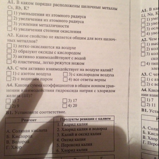 А1-2, А2- 2,А3- 3, А4- 2 K2SO3+H2SO4=K2SO4+SO2+H2O