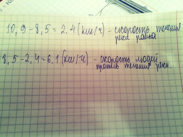 Лодка проплыла из пункта А в пункт В со средней скоростью 8,5кмч.скорость лодки по течению реки 10,9кмч. Какова скорость лодки против течения реки ?Какова скорость течения реки?