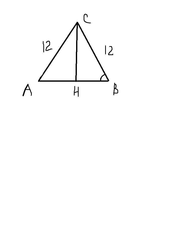 В треугольнике ABC : АС=ВС=12, sinB=.