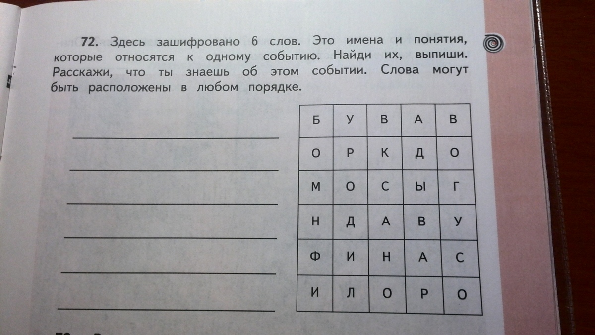 здесь зашифровано 6 слов. это имена и понятия, которые относятся к одному событию(отечественная война 1812год). Найди их, напиши. Расскажи, что ты знаешь об этом событии. Слова могут быть РАСПОЛОЖЕНЫ В ЛЮБОМ ПОРЯДКЕ