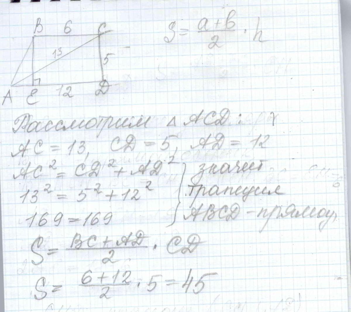 т.к.13^2 =12^2+5^2=>треугольник ACD - прямоугольный с прямым <d=>