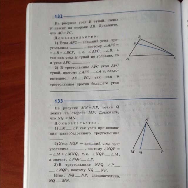 2) В треугольнике AFC угол AFC тупой, поэтому угол AFC __>_ угла A , и, следовательно, AC __>_ FC , т.к. в треугольнике против большего угла