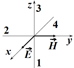 Если вращать буравчик от вектора Е к вектору B( H) по кратчайшему пути, то поступательное движение буравчика укажет направление скорости электромагнитной волны