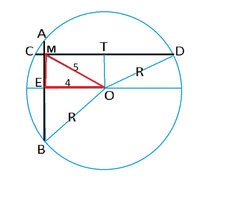 Расстояние из О к хорде СD перпендикуляр и делит ее в точке Т пополам.