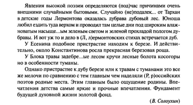 Для многих писателей родная природа была источником вдохновения.В.Солоухин замечает, что у Лермонтова дубрава рождала поэтические образы, у Есенина - береза, а у Блока - кручи, косогоры, т.е. все то что они видели у родных мест.