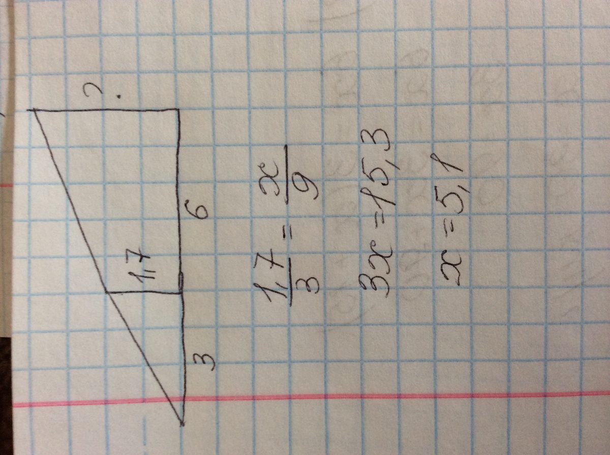 Человек ростом 1.7 м стоит на расстояние 6 шагов от столба, на котором висит фонарь. Тень человека равна трём шагам.На какой высоте( в метрах) расположен фонарь?