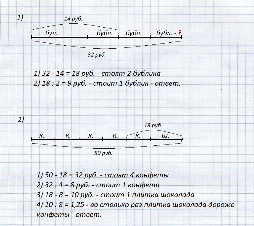 а) Булочка и бублик стоят 14 р. , а булочка и 3 бублика стоят 32 р. Сколько стоит 1 бублик?