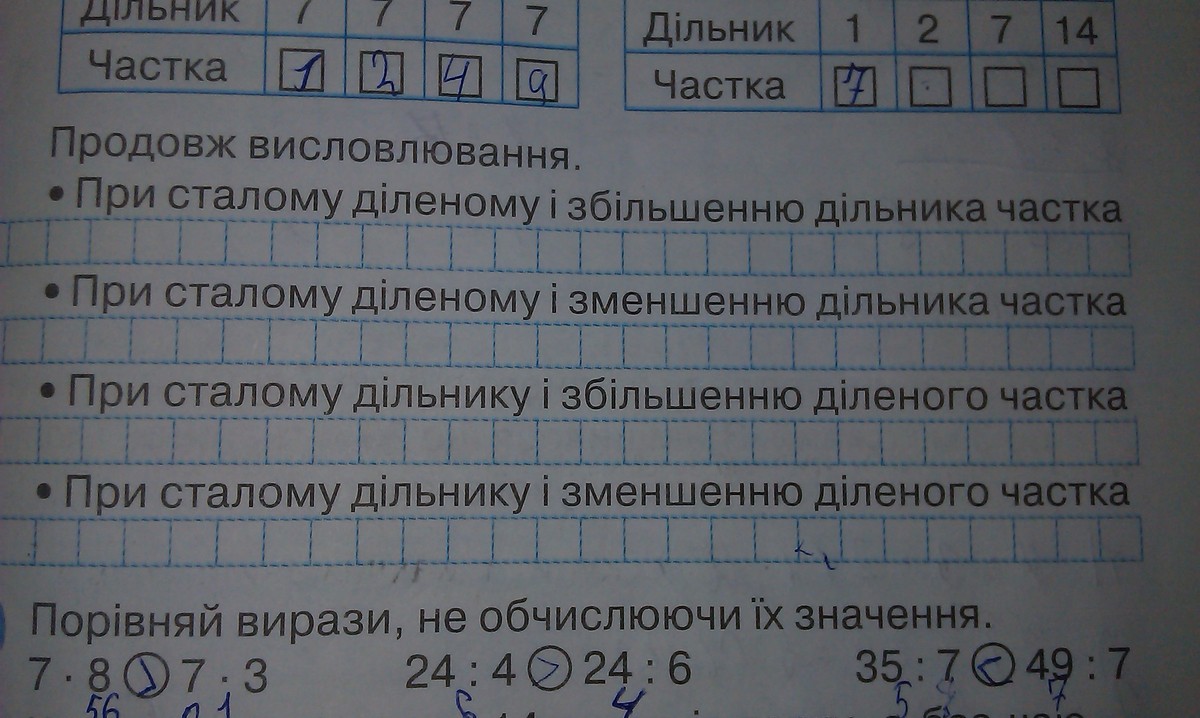 При сталому діленому і збільшенню дільника частка зменшиться.