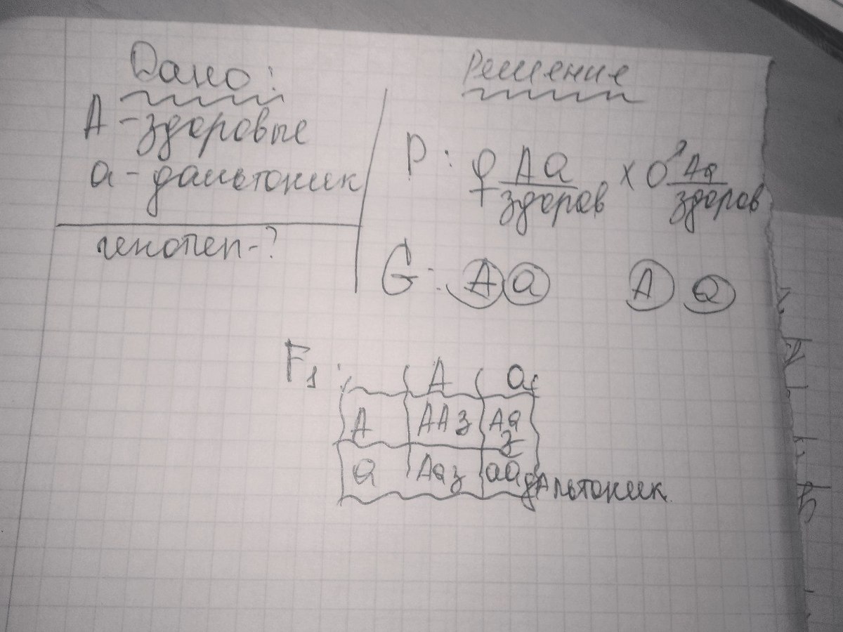 F1: АА здоров, Аа-здоров, Аа-здоров, аа-больной