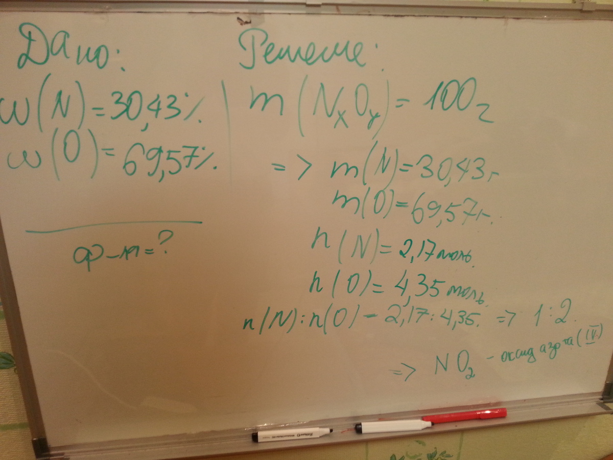массовые доли азота и кислорода в оксиде азота равны соответственно30,43и69,57%.Определите простейшую формулу этого оксида.