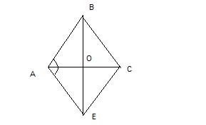Треугольники АОВ, ВОС, СОЕ, ЕОА - равные прямоугольные, т.к. диагонали ромба взаимно перпендикулярны (треугольники равны по трем сторонам). Поскольку диагонали ромба делят его углы пополам, то