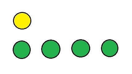 1) 5 - 3 = 2 лист. - уравняли кол-во жёлт. и зелёных