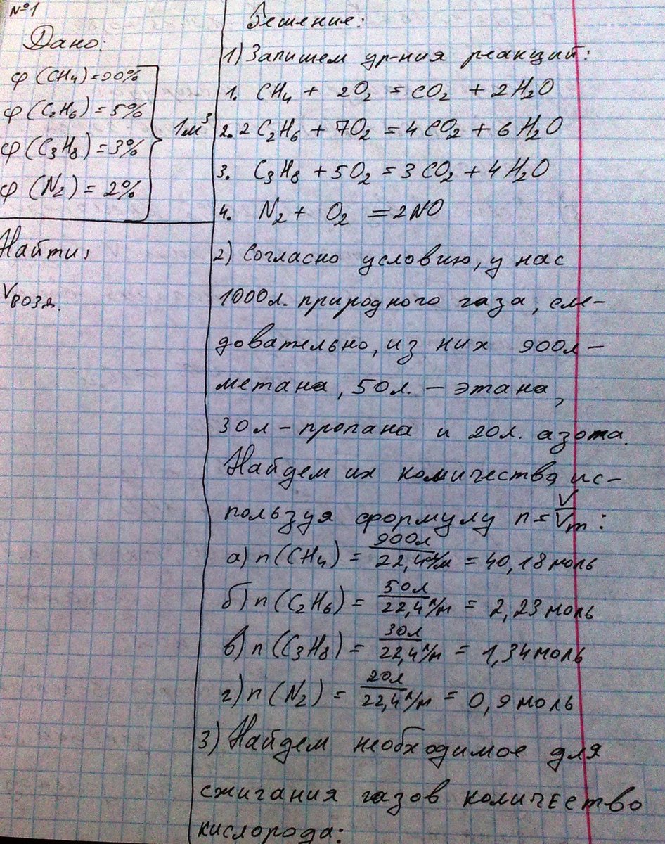 1) какой объем воздуха потребуется чтобы сжечь 1м3 природного газа(н.у.) имеющий следующий состав: 90% метана, 5% этана, 3% пропана, 2% азота?2)Составьте молекулярные формулы алканов, в молекулах которых содержаться : а) 7 атомов углерода; б) 9 атомов угдерода; в) 22 атома водорода3)напишите уравнение реакции горения пропана расставьте коэффициенты и докажите что эта реакция окислительно-восстановительнаяПожалуйста!:))))Очень нужна ваша помощь)))До завтра нужно сделать((