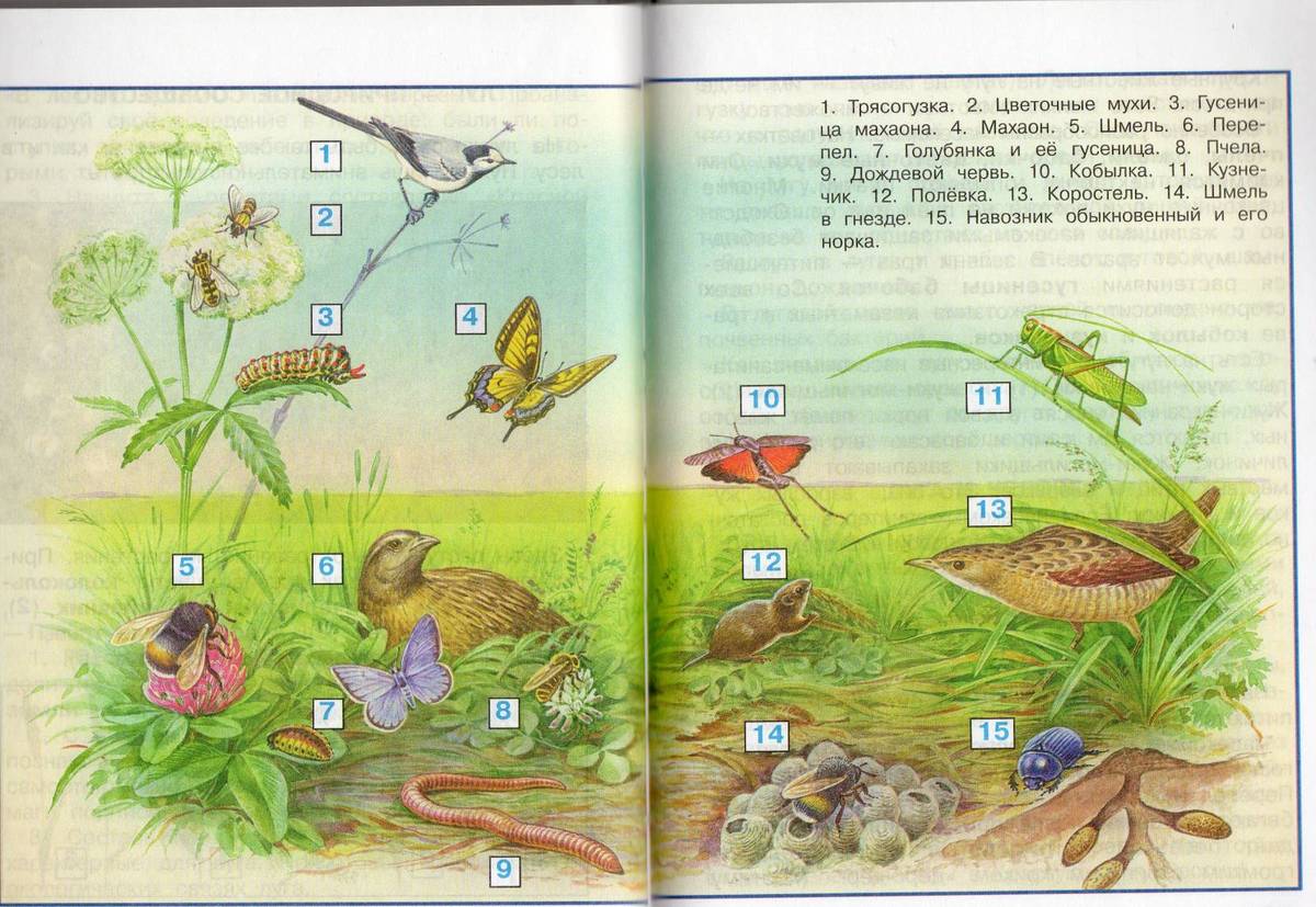 Цепи питания этих животных обитающих на лугу вот картинка: