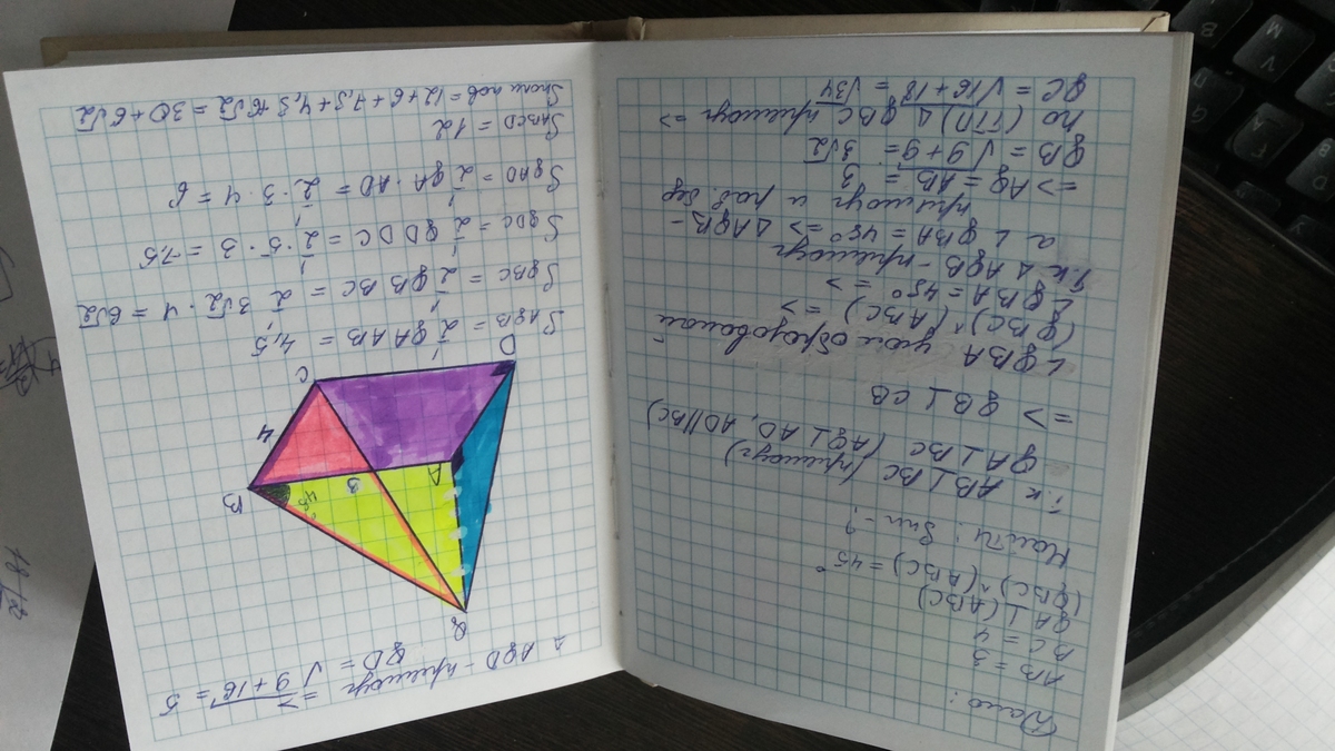 основание пирамиды QABCD -прямоугольник ABCD со сторонами AB=3 см и BC =
