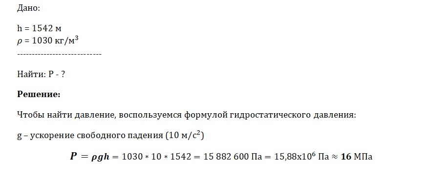 какое давление действует на батискаф погруженный в море на глубину 1542м 1030 плотность морской воды