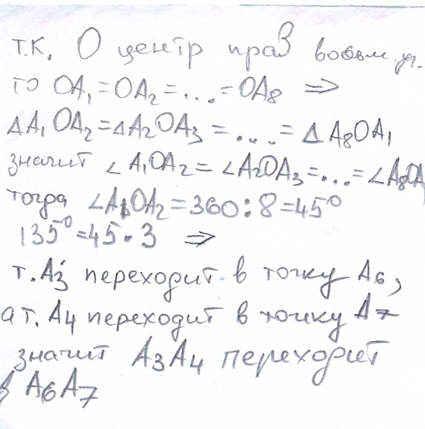 Точка О - центр правильного восьмиугольника,изображенного на рисунке. Укажите образ стороны А3А4 при повороте вокруг точки О по часовой стрелке на угол 135°.