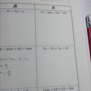 д) 3у=-15 у=-5 е) -15n=-30 n=2 е2)у=3