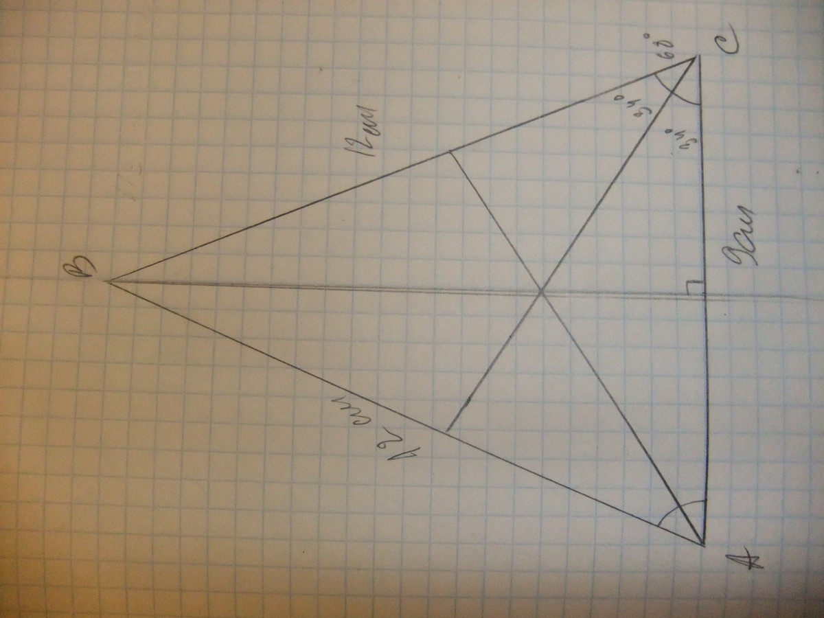 Постройте равнобедренный треугольник, боковая сторона которого имеет длину, равную 12 см, а основание - 9 см. Проведите биссектрисы треугольника. Решите на листочке и сфоткайте!