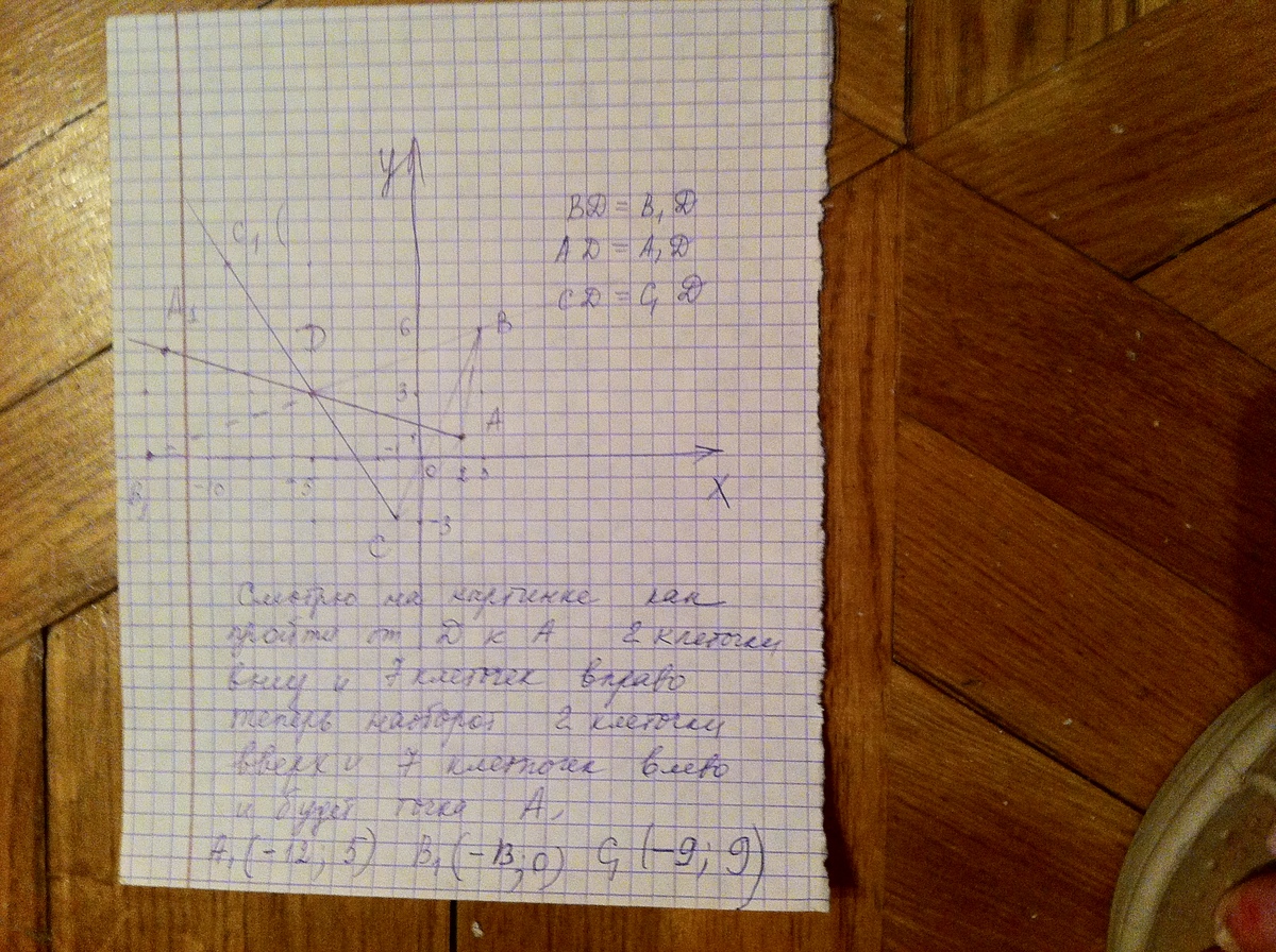 Треугольник ABC имеет вершины A (2;1) B (3;6) C (-1;-3). Этот треугольник отображается в тругольник A1B1C1 относительно точки D (-5;3). Найдите координаты вершин A1,B1,C1