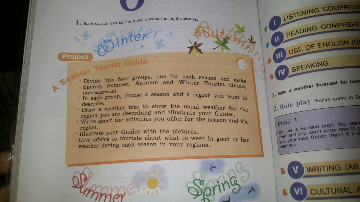 1) Разделить на четыре группы, по одному для каждого сезона и сделать весну,лето,осень и зимних туристических гидов.