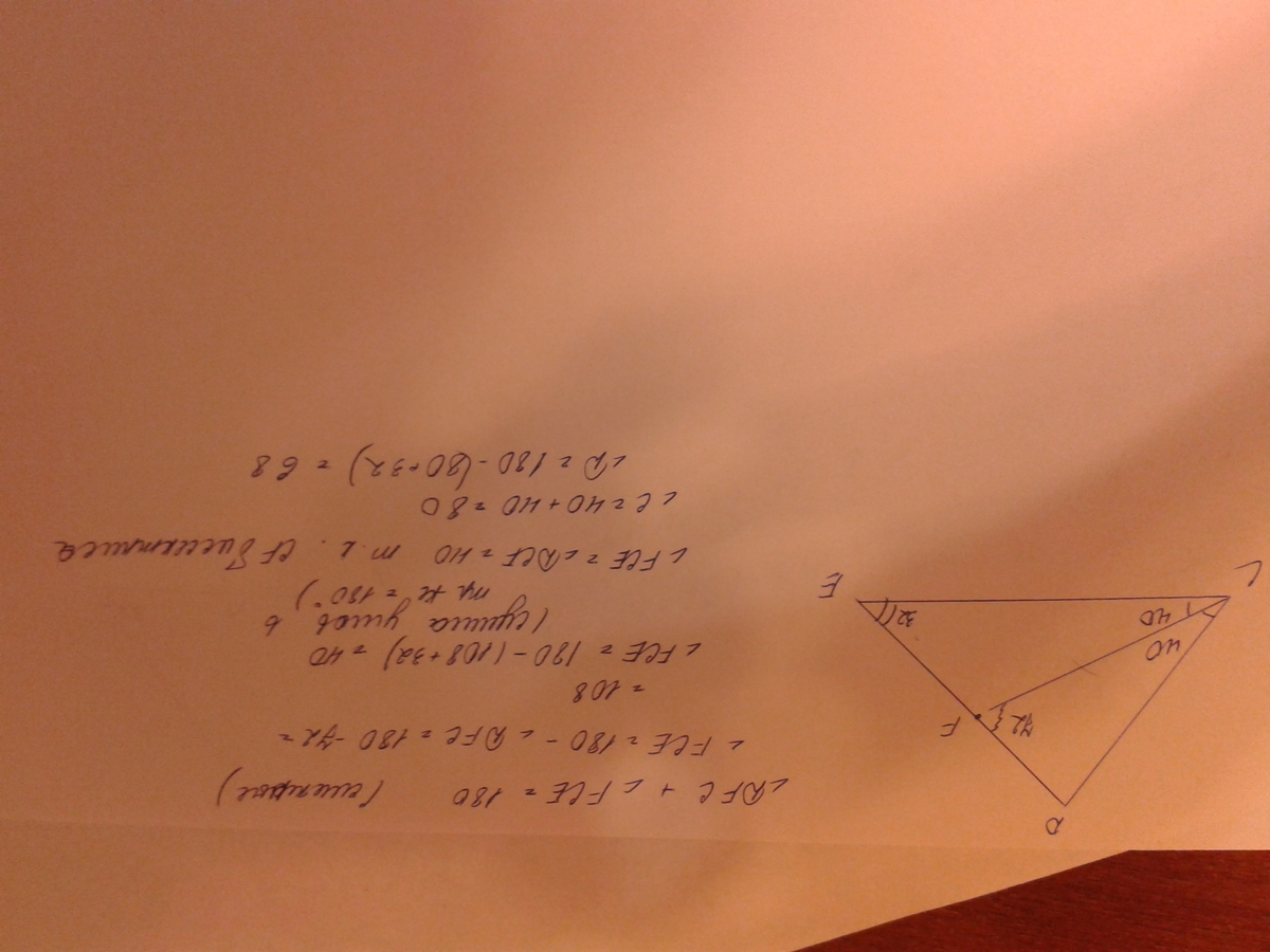 в треугольнике CDE с углом E равным 32 градуса, проведина биссектриса CF, угол CFD равен 72 градуса. найдите угол