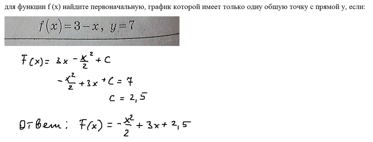 для функции f (x) найдите первоначальную, график которой имеет только одну общую точку с прямой y, если: