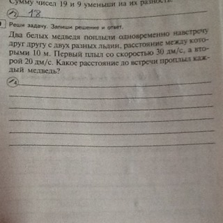 4) 20 * 2 = 40(дм) = 4(м) проплыл другой медведь