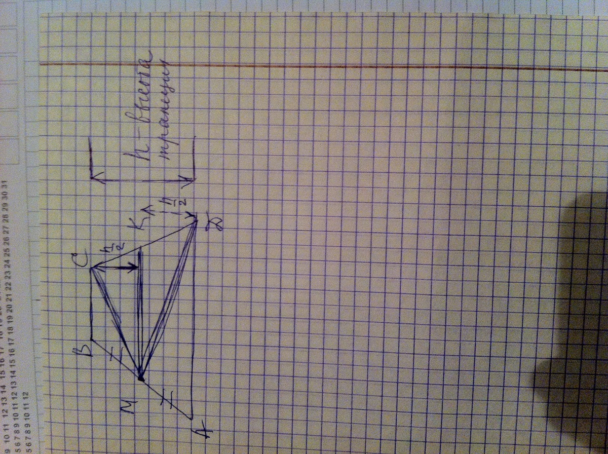 Треугольник СМД разбился на два треугольника. Высота трапеции тоже поделилась пополам средней линией МК.
