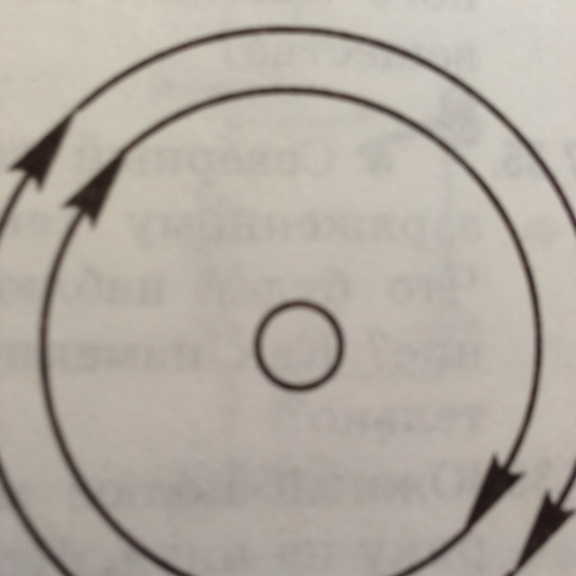На рисунке показано направление линий магнитного поля прямого проводнике. Как направлен ток в проводнике от наса или к нам?