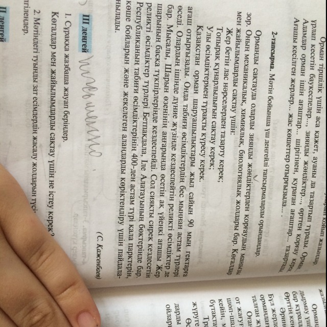Пишешь или отвечаешь с предложения которые начинаются:Қазақстан орман шаруашылықтары жыл сайын 90 мың гектарға ағаш отырғызады и до конца текста