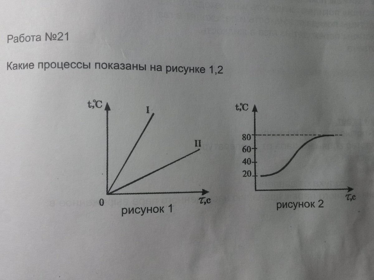первый - нагревание, причем первое тело нагревается быстрее второго, а на втором процесс нагревания сначала и потом плавление,т.к. температура не меняется. достигнув 80 градусов