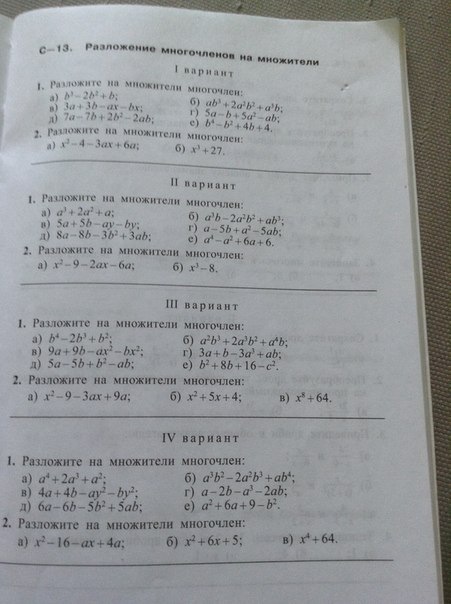 а)а*а*а+2*а*а+а (в)9*а+9*b-a*x*x-b*x*x (д)5*а-5*b+b*b-a*b (б)а*а*b*b*b+2a*a*a*b*b+a*a*a*a*b (г)3*а+3*b-3*a*a*a+a*b (e)b*b++8*b+4*4-c*c