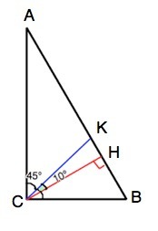 Обозначим треугольник АВС, СК - биссектриса, СН высота. ∠С=90°
