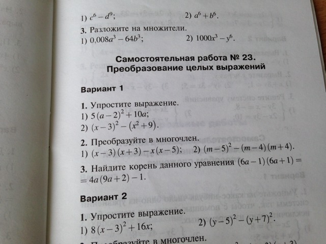 б) (x-3)^2-(x^2+9)=x^2-6x+9-(x-3)(x+3)=x^2-6x+9-x^2-3x+3x-9=6x.