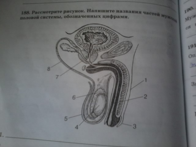 Рассмотрите рисунок. Напишите названия частей мужской половой системы,обозначенных цифрами