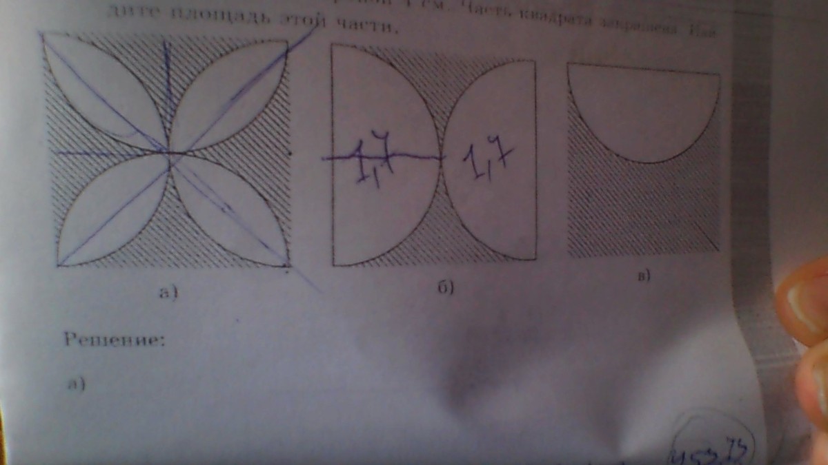 Решите срочно!! Задача 6 класса!!! Дан квадрат со стороной 4 см. Часть квадрата закрашена. Найди площадь закрашенной части!! Под а)