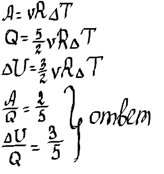 Найдите,какая часть количества теплоты,сообщенной одноатомному газу при изобарном процессе,идет на увеличение внутренней энергии и какая часть - на совершение работы.